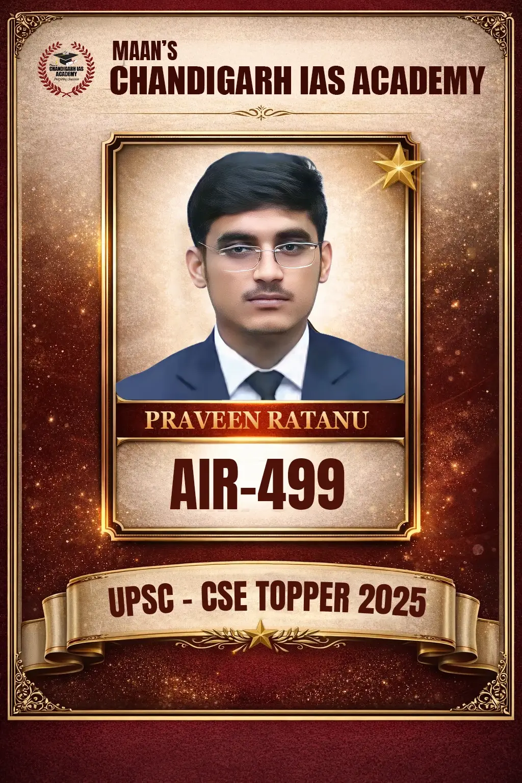 The institute is the finest among all the other institutions for UPSC and State civil services. Maan sir being an extraordinarily diligent and experienced teacher, is a great mentor. The approach of the faculty is not only to get you clear the exam but also make you insightful and aware of the issues of current importance. With my experience at the institute, they have provided us with a healthy and secure environment for learning as well as extremely fine material and guidance for the preparation.